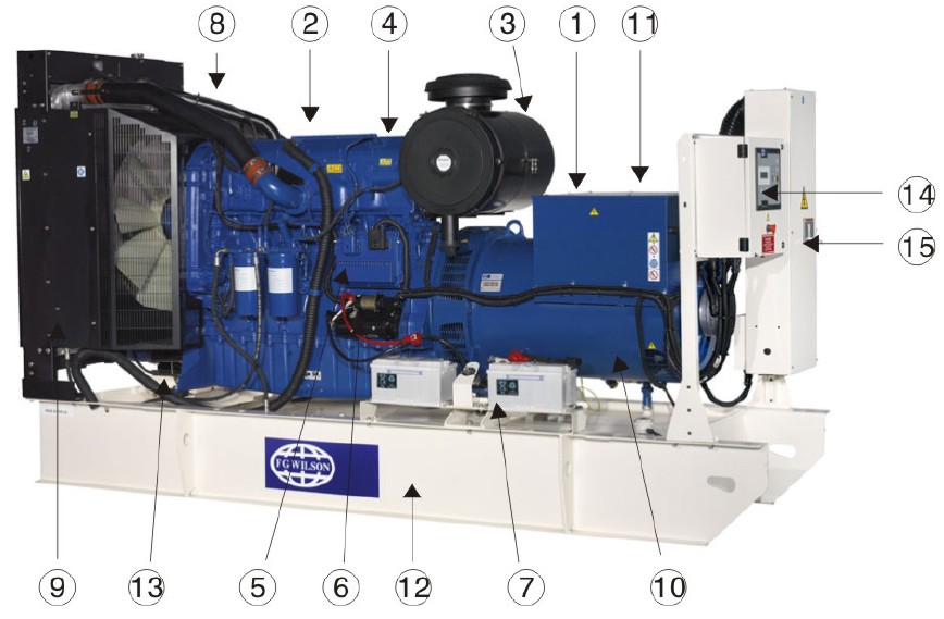 發(fā)電機組的組成(三個部分:A、引擎,B、發(fā)電機,C、控制裝置)