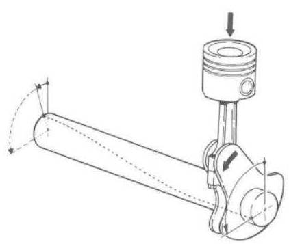 在四沖程循環(huán)中,每個(gè)汽缸瞬間氣壓發(fā)生著變化,那么任何點(diǎn)上的扭矩也在發(fā)生著變化。這將導(dǎo)致曲軸在其均值旋轉(zhuǎn)位置附近出現(xiàn)“搖晃”的情況。