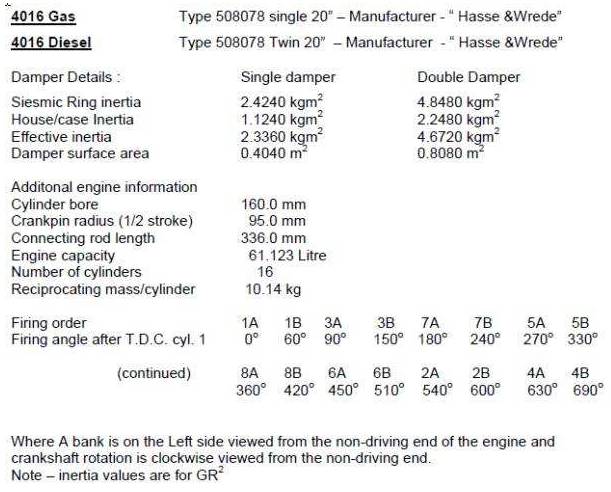 該扭轉(zhuǎn)振動(dòng)分析的目的是計(jì)算出量級(jí)和擾動(dòng)力頻率的臨界轉(zhuǎn)速點(diǎn),并確保破壞臨界速度超出了引擎運(yùn)行范圍,且非常明顯地使其在+10%到-5%的同步速度范圍內(nèi)。有一些臨界轉(zhuǎn)速可能在從啟動(dòng)到同步轉(zhuǎn)速的95%范圍內(nèi),但是這些都可能被視為“安全”,臨界轉(zhuǎn)速立刻通過,因?yàn)椤芭R界轉(zhuǎn)速”1秒左右立刻通過。