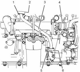 c. 將管組件(3)放在發(fā)動(dòng)機(jī)上,并擰緊螺栓(1)。
