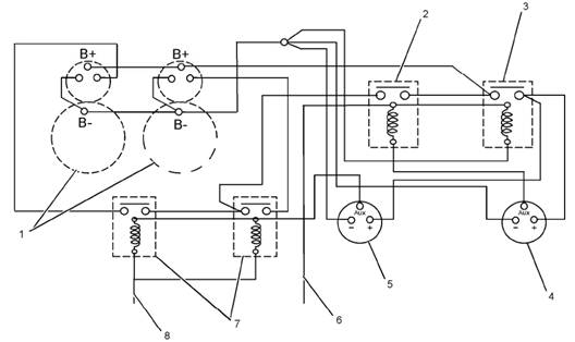1)啟動(dòng)馬達(dá) 2)繼電器1 3) 繼電器2 4)燃油電磁閥繼電器1 5) 燃油電磁閥繼電器2 6) 燃油電磁閥 7)起動(dòng)繼電器 8)起動(dòng)信號(hào)