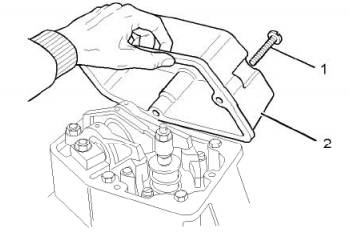 1 remove the adjustment screw (1). 2 remove rocker cover (2). 3 remove connector (not shown). 4 for the rest of the rocker arm chamber cover repeat steps 1 to 3. In 4016 • 61 TRG engine according to table in order to adjust the valve clearance is shown in 7.