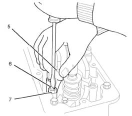 6 loose into the lock nut on the valve bridge (7).