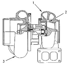 3用手轉(zhuǎn)動旋轉(zhuǎn)組件。當(dāng)您轉(zhuǎn)動此組件時(shí)請側(cè)向推動該組件。總成應(yīng)該轉(zhuǎn)動自如。渦輪機(jī)葉輪(2)不應(yīng)與渦輪機(jī)殼體(1)發(fā)生摩擦。如果渦輪機(jī)葉輪(2)與渦輪機(jī)殼體(1)發(fā)生摩擦,請更換渦輪增壓器(3)。如果沒有摩擦或刮擦請進(jìn)行步驟4。