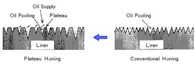The 1: store oil cylinder machined surface pattern with machine and grinding, pattern angle gradually removed, therefore the oil consumption is also reduced gradually