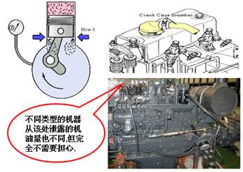 為了使康明斯發(fā)動機能夠連續(xù)的輸出功率,曲軸箱必須和大氣相同,因此必須有一個管道來連接曲軸箱和大氣,俗稱”下排氣管”,通過活塞環(huán)泄露的少量高溫燃氣通過”下排氣管”導入大氣當中,同時將由于曲軸高速旋轉(zhuǎn)時激起的機油油霧排到大氣當中,致使有少量的機油消耗.