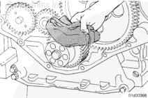 注: 正確支撐前齒輪室蓋的機(jī)油油封法蘭,防止損壞機(jī)油油封和前齒輪室蓋。
