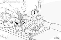 使用搖臂執(zhí)行器使康明斯噴油器柱塞到達底部。確認千分表歸零。