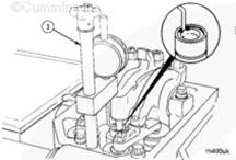 斷開蓄電池電纜。參考步驟 013-009。用蒸氣清洗發(fā)動機,以防在拆下氣門罩后,有污物進入發(fā)動機。參考步驟 000-009。拆下康明斯搖臂室蓋。參考步驟 003-011。