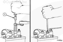 按下?lián)u臂直到到達康明斯噴油器底部 2 到 3 次。這樣將去除康明斯噴油器油杯中的燃油和機油。