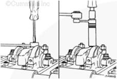如果搖臂沒有拆過,在有問題的兩個氣缸上擺動氣門搖臂。如果感到氣缸的兩個搖臂都已松動,則可以開始調(diào)節(jié)其跨接壓板和氣門。