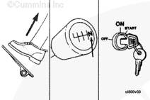 注: 對于配備有 Prelub 系統(tǒng)的發(fā)動機,將鍵固定在”START”(起動)位置以增大機油壓力。