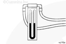 較大的康明斯空-空中冷器泄漏可通過進行檢查來找到。使用以下步驟診斷并查找較小的泄漏:從空-空中冷器上拆下進氣軟管和排氣軟管,然后檢查空-空中冷器管或集氣管有無裂紋。