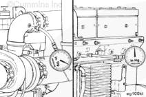 要測試空-空中冷器有無過度的堵塞情況,則需將壓力計的一端安裝到進氣歧管中,將另一端安裝到渦輪增壓器壓縮機出口中。以最大功率 (rpm) 和負載運轉(zhuǎn)發(fā)動機。觀察壓力計(零件號 3824718)或等同物,如果壓差高于 13.5 kPa [2 psi],則檢查空-空中冷器和管路有無內(nèi)部堵塞。如有必要,維修或更換。請參考本服務(wù)公告中的“空-空中冷器系統(tǒng)的清潔和檢查”。