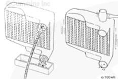 沿正常氣流的反方向,使用溶劑沖洗空-空中冷器和管路內(nèi)部,以便除去機油和其它外來的碎屑?;蝿涌?空中冷器,并使用橡膠錘輕輕敲打空氣箱,以便清除粘附的碎屑。繼續(xù)沖洗,直到所有的碎屑和機油都被清除。