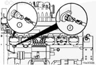冷卻液壓力傳感器可以位于三個不同的位置:在冷卻液濾清器之間(見插圖),在發(fā)動機(jī)缸體上,燃油泵后面。在冷卻液濾清器和節(jié)溫器殼體中間的隔圈體中。將發(fā)動機(jī)線束連接到冷卻液壓力傳感器上。