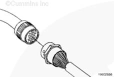 將發(fā)動機(jī)線束 Deutsch 接頭連接到發(fā)動機(jī)線束延長電纜上(如果使用)或者發(fā)動機(jī)線束適配器電纜上。使用一個 4 mm [5/32 in] 六角扳手?jǐn)Q緊。扭矩值: 3 n.m [27 in-lb]