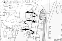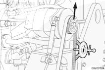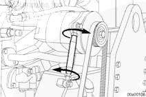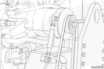 轉(zhuǎn)動調(diào)節(jié)桿以解除皮帶張力。拆下充電機皮帶。參考步驟 013-005。
