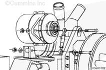 順時針轉(zhuǎn)動調(diào)整螺釘以張緊皮帶。擰緊皮帶。參考驅(qū)動皮帶張力 013-005。使用(Burroughs)皮帶張力規(guī)測量皮帶張力。 QST30 發(fā)動機使用 5 肋 K 形皮帶。