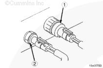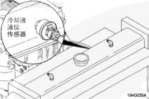 注: 這是一個(gè)可選裝的傳感器,不是所有發(fā)動(dòng)機(jī)上都裝有此傳感器。如果沒(méi)有使用冷卻液液位傳感器,則安裝一個(gè)短接插頭。