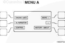 顯示菜單有 6 個(gè)快速按鈕 - 圖形顯示窗的兩邊各有三個(gè) - 用于系統(tǒng)控制菜單導(dǎo)航和調(diào)整發(fā)電機(jī)組參數(shù)。