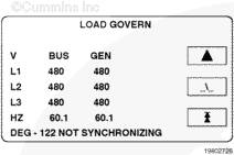 當(dāng)控制系統(tǒng)使發(fā)電機(jī)組達(dá)到額定轉(zhuǎn)速和電壓并且已經(jīng)感應(yīng)到母線電壓可用時(shí),啟用控制系統(tǒng)的同步功能??刂葡到y(tǒng)自動(dòng)調(diào)整發(fā)電機(jī)組轉(zhuǎn)速和電壓,以匹配母線頻率和電壓。