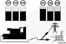 如果不同規(guī)格的兩臺(tái)發(fā)電機(jī)組并聯(lián),它們會(huì)自動(dòng)按相同的百分比分擔(dān)系統(tǒng)負(fù)載。在前控制面板的模擬負(fù)載計(jì)上可以容易地核實(shí)這一點(diǎn)。