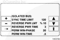 “隔離母線”子菜單和“公用電網(wǎng)”子菜單用于調(diào)整隔離母線和公用電網(wǎng)(干線)并聯(lián)應(yīng)用類型的發(fā)電機(jī)組保護(hù)、同步和負(fù)載分配的控制參數(shù)。并聯(lián)公用電網(wǎng)(干線)可能需要調(diào)整隔離母線和公用電網(wǎng)子菜單。