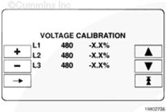 設(shè)置和調(diào)整子菜單允許標(biāo)定圖形顯示器上的計(jì)量?jī)x表,并可以調(diào)整系統(tǒng)參數(shù)和用戶定義的故障代碼、發(fā)電機(jī)組的電壓/頻率以及并聯(lián)應(yīng)用類型。設(shè)置和調(diào)整子菜單只能由合格的技術(shù)人員進(jìn)行修改。