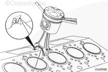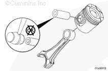 使用兩根 11-mm 尼龍連桿導(dǎo)向銷(零件號 3163363)。安裝導(dǎo)向銷可防止連桿掉落,損壞其它發(fā)動機零件。