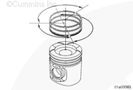 使用活塞環(huán)壓縮器(零件號 3822736)壓縮活塞環(huán)。