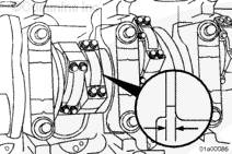 連桿的軸瓦定位舌側(cè)(左排和右排連桿)必須朝向左排凸輪軸,否則可能會出現(xiàn)曲軸或連桿損壞。