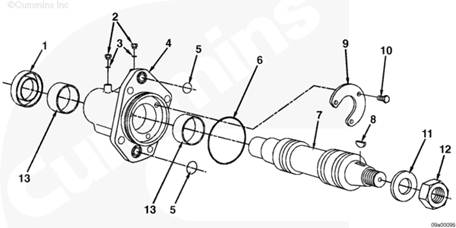 1油封 (1),2直螺紋 O 形圈螺塞 (2),3 O 形密封圈 (2),4驅(qū)動殼體,5 O 形密封圈 (2),6 O 形密封圈,7軸,8半圓鍵,9止推板,10螺栓 (3),11墊圈,12螺母,13襯套 (2)。