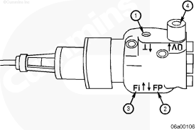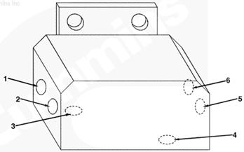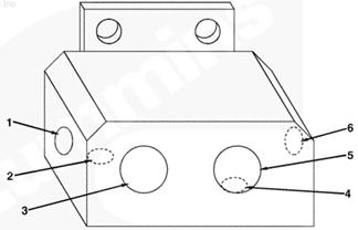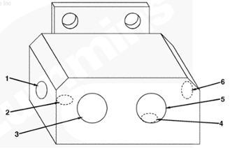 1左排燃油連接塊(零件號(hào) 3094175),2燃油噴油泵溢流閥的燃油(回油),3自左排噴油器回油管的燃油,4至左排燃油歧管的回油,5插入
