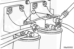 發(fā)電機(jī)組/發(fā)電機(jī)驅(qū)動(dòng)燃油布置方案僅采用分離式燃油濾清器座(如下圖所示)。分離式燃油濾清器座可以在燃油濾清器座中使用兩個(gè)減壓閥。這可防止在發(fā)動(dòng)機(jī)停機(jī)期間,機(jī)械輸油泵在燃油切斷閥閉合時(shí)繼續(xù)積聚壓力,導(dǎo)致燃油濾清器密封件故障。此外,發(fā)動(dòng)機(jī)傳遞的熱量會(huì)使燃油膨脹,壓力增大,因而必須使用減壓閥。