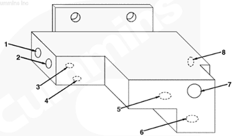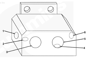 1左排燃油歧管(零件號(hào) 3094772),2流至 EHAB 進(jìn)口的燃油(抽吸未經(jīng)過(guò)濾的燃油),3流至右排燃油歧管(右排供油)的燃油(抽吸未經(jīng)過(guò)濾的燃油),4自油箱/粗濾器的供油進(jìn)口,5自右排燃油歧管流入的燃油(回油),6流至供油箱的燃油(回油),7自 EHAB/噴油泵溢流管和噴油器回油管(兩條管路)的回油。