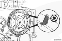 安裝凸輪軸齒輪時(shí),必須將凸輪軸固定在最靠前的位置。如果未將凸輪軸固定在此位置,可導(dǎo)致凸輪軸齒輪不能位于凸輪軸上的正確位置。 |