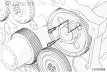 如果需要,旋轉(zhuǎn)曲軸以使凸輪軸齒輪上的孔與止推板上的螺栓孔相通安裝兩顆止推板安裝螺栓。擰緊螺栓。扭矩值: 45 n.m [33 ft-lb]