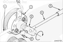 可用的凸輪軸鍵包括不同的規(guī)格(偏移量)。噴油器正時(shí)由下列因素控制:凸輪軸鍵的選擇,與凸輪軸齒輪旋轉(zhuǎn)方向相比,鍵偏移的方向,偏移量。在相同的方位安裝與拆下的鍵相同零件號(hào)的鍵。參考第 6 節(jié)中的步驟 006-025。