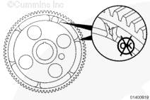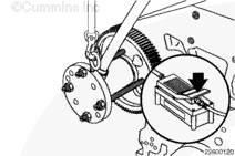 檢查并記錄鍵相對(duì)于凸輪軸齒輪旋轉(zhuǎn)方向的偏移方向(相同或相反)。拆卸鍵。