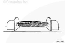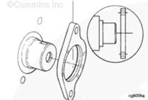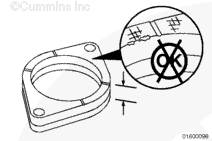 齒輪室切勿妨礙止推板平靠在缸體上。使用 Lubriplate ™ 105(零件號(hào) 3163086)在齒輪位置潤(rùn)滑凸輪軸的外徑。安裝止推板,止推板上的槽朝向凸輪軸齒輪。