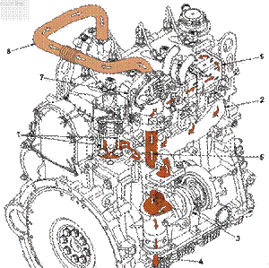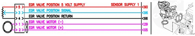 1、 排氣門, 2、排氣歧管,3、渦輪增壓器,4、渦輪增壓器排氣出口,5、至 EGR 閥的廢氣,6、EGR 冷卻器,7、EGR 閥,8、EGR 跨接管,