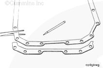 如果先前裝配了紙制油底殼密封墊,則將舊密封墊作為模板,切掉新的密封墊至相同的尺寸。涂上一薄層密封膠(零件號 3164067)將密封墊固定到位。