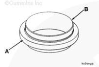 新的曲軸后油封 (A) 將安裝在油封導(dǎo)向工具 (B) 上。在將油封安裝在曲軸前端上時(shí),此油封必須留在油封導(dǎo)向工具上。這可確保在安裝期間不會(huì)損壞油封唇部。