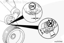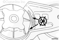 測量張緊器彈簧殼與張緊器臂之間的間隙,以核實(shí)張緊器已磨損以及不均勻的軸承磨損。如果在任何點(diǎn)上的間隙超過 3 mm [0.12 in],則張緊器失效而且必須作為整個(gè)總成進(jìn)行更換。