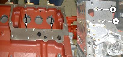 1、檢查缸體上水泵下面的螺栓A(M22*1.5mm在主油道上)可導(dǎo)致機(jī)油進(jìn)入冷卻系統(tǒng)。