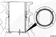 當(dāng)繼續(xù)使用缸套時,將它們裝入與拆卸時相同的氣缸中,并從原來位置旋轉(zhuǎn) 45 度(1/8 圈)。安裝正確時,缸套穴蝕的位置必須如圖所示,穴蝕面應(yīng)旋轉(zhuǎn)至遠離發(fā)生穴蝕的位置。
