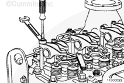 使用盤車工具(零件號(hào) 3824591 )或等同物,將曲軸轉(zhuǎn)動(dòng) 360 度,測(cè)量搖臂 2E、3l、4E、5l、6l 和 6E 的間隙。如果間隙超出技術(shù)規(guī)范,則重設(shè)間隙。