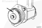 當(dāng)從齒輪端看壓縮機(jī)(壓縮機(jī)處于垂直位置)時(shí),轉(zhuǎn)動(dòng)齒輪使“l(fā)”正時(shí)標(biāo)記處在 3 點(diǎn)位置。Cummins® 單缸空氣壓縮機(jī)在殼體上的 3 點(diǎn)鐘位置有一個(gè)小片,可以幫助設(shè)定壓縮機(jī)的正時(shí)。一旦正時(shí)標(biāo)記處于 3 點(diǎn)的位置,這會(huì)將壓縮機(jī)設(shè)定為壓縮機(jī)壓縮沖程上止點(diǎn)前 60 度。