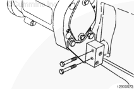將隔圈安裝到支架螺栓上,并用手?jǐn)Q緊。確保隔圈和托架之間沒(méi)有間隙,隔圈和缸體之間沒(méi)有間隙。擰緊螺栓。扭矩值: 43 n.m [32 ft-lb]